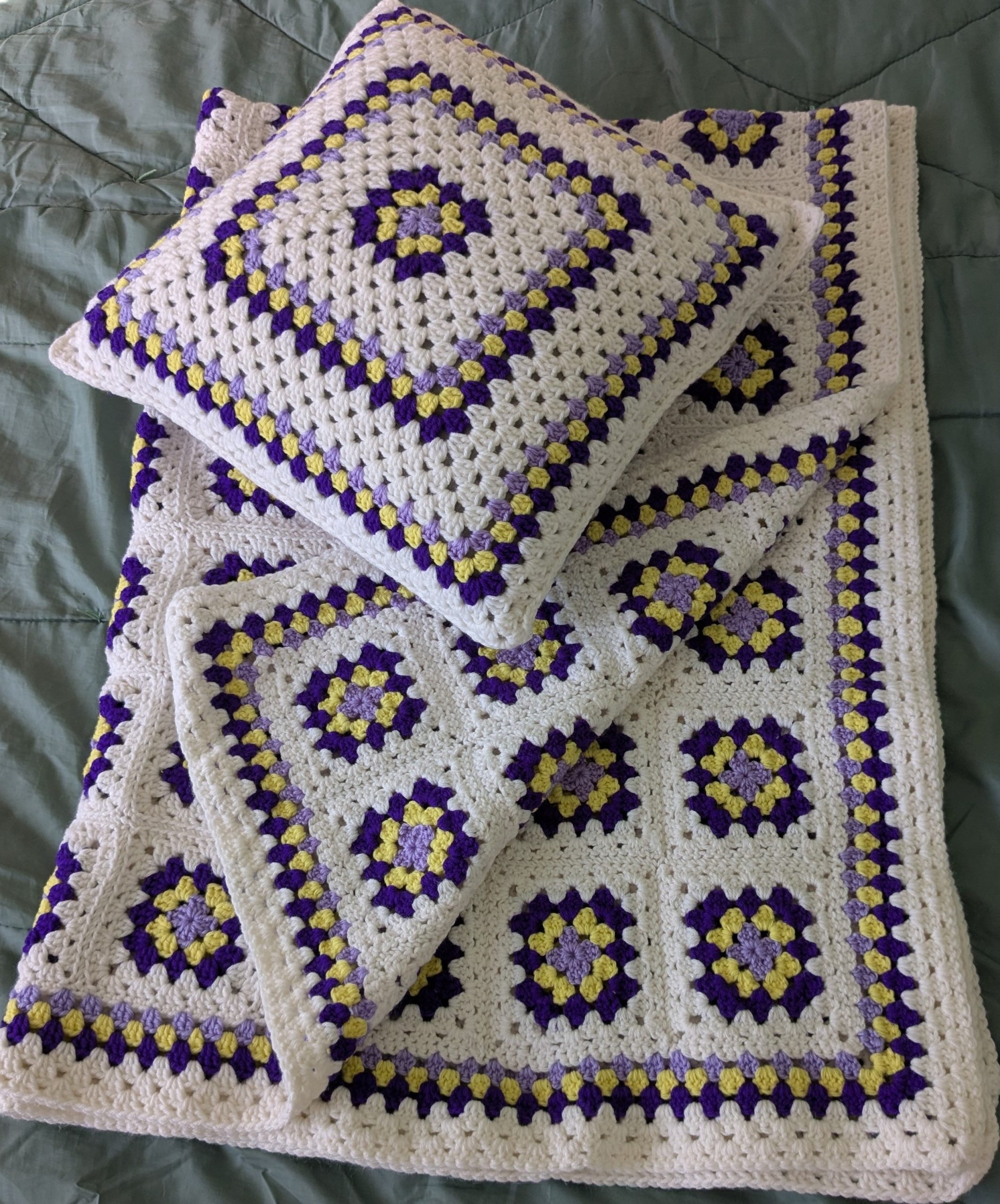 Crocheted blanket and pillow set